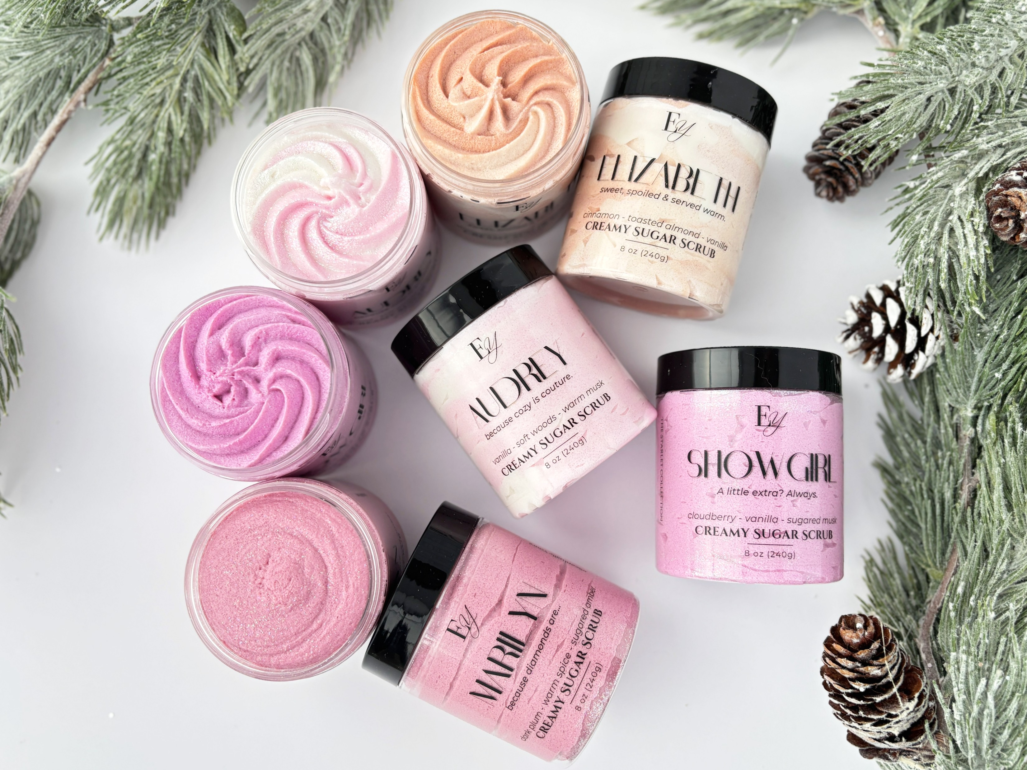 Step into the golden age of glamour with The Starlet Collection Winter sugar scrubs, a luxurious holiday lineup inspired by the timeless icons of Old Hollywood. Each scent captures a mood - from cozy and elegant to sweetly seductive - wrapped in sophistication and handcrafted artistry. Made in small batches with organic oils, rich butters, and botanical extracts, these indulgent body treats turn every self-care moment into a red-carpet ritual.