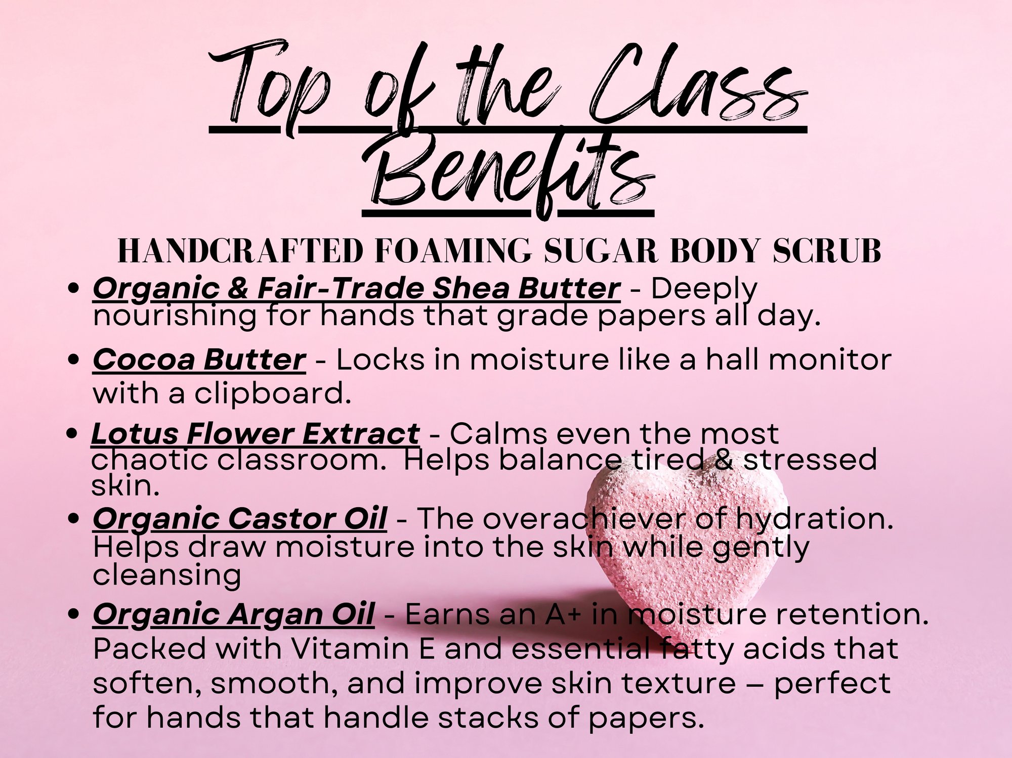 These 2 oz scrubs are handcrafted from scratch with skin-loving oils and butters for a creamy, fluffy lather that cleanses, softens, and feels oh-so-luxurious.