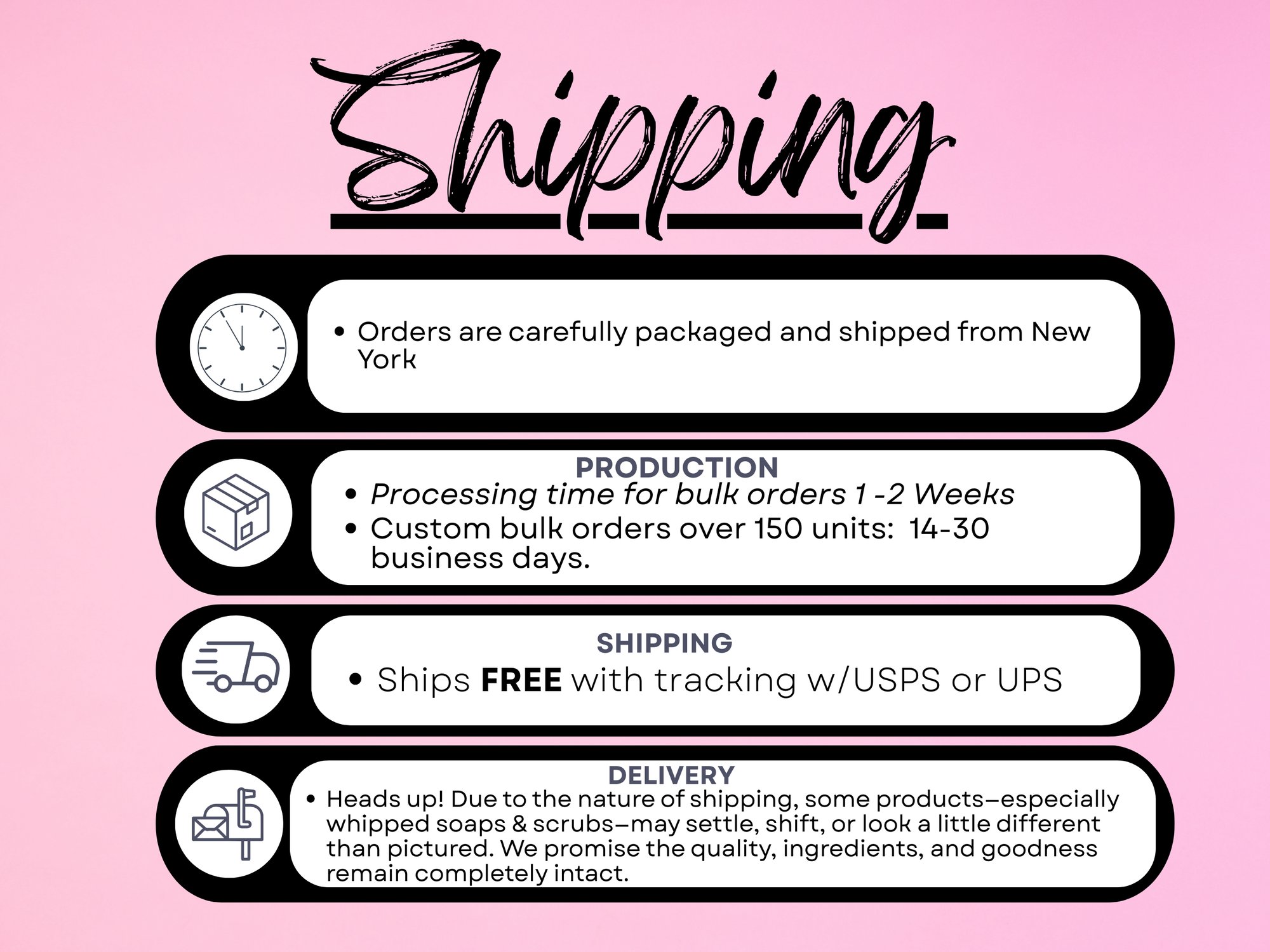 ‼️Due to the nature of shipping, some products—especially whipped or delicate items—may settle, shift, or look a little different than pictured. We promise the quality, ingredients, and goodness remain completely intact.
