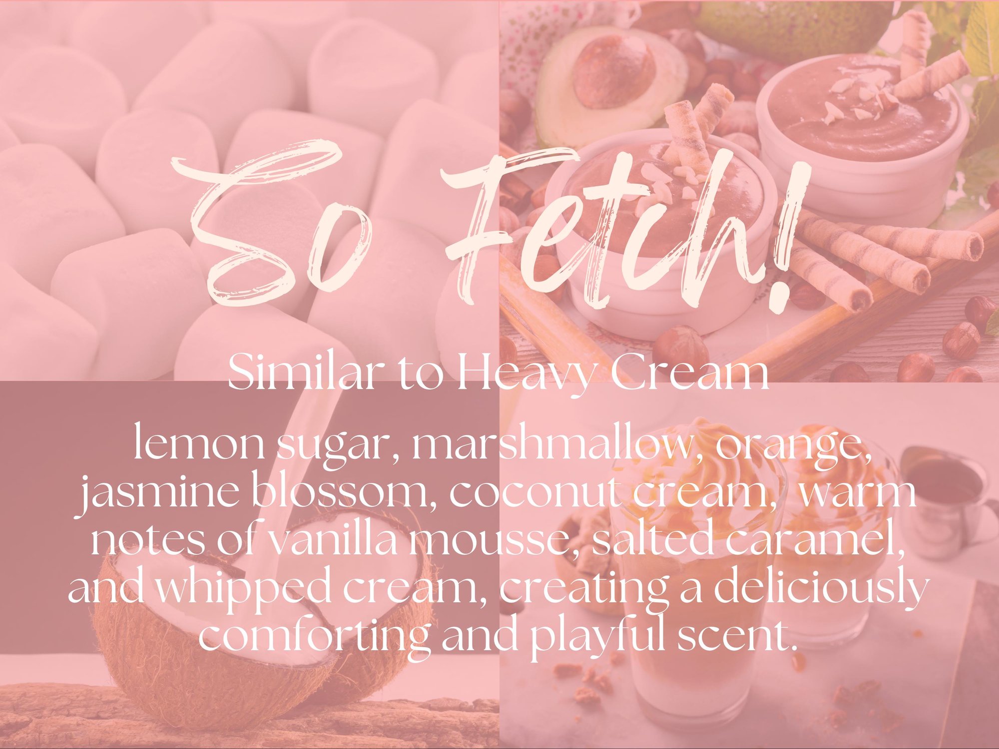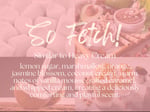 A sweet, airy fragrance that opens with a bright mix of lemon sugar, marshmallow, and orange. The heart is soft and creamy with jasmine blossom, coconut cream, and a touch of warmth from vegan ambrettolide. It finishes with indulgent notes of vanilla mousse, salted caramel, and whipped cream, creating a deliciously comforting and playful scent.