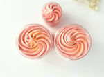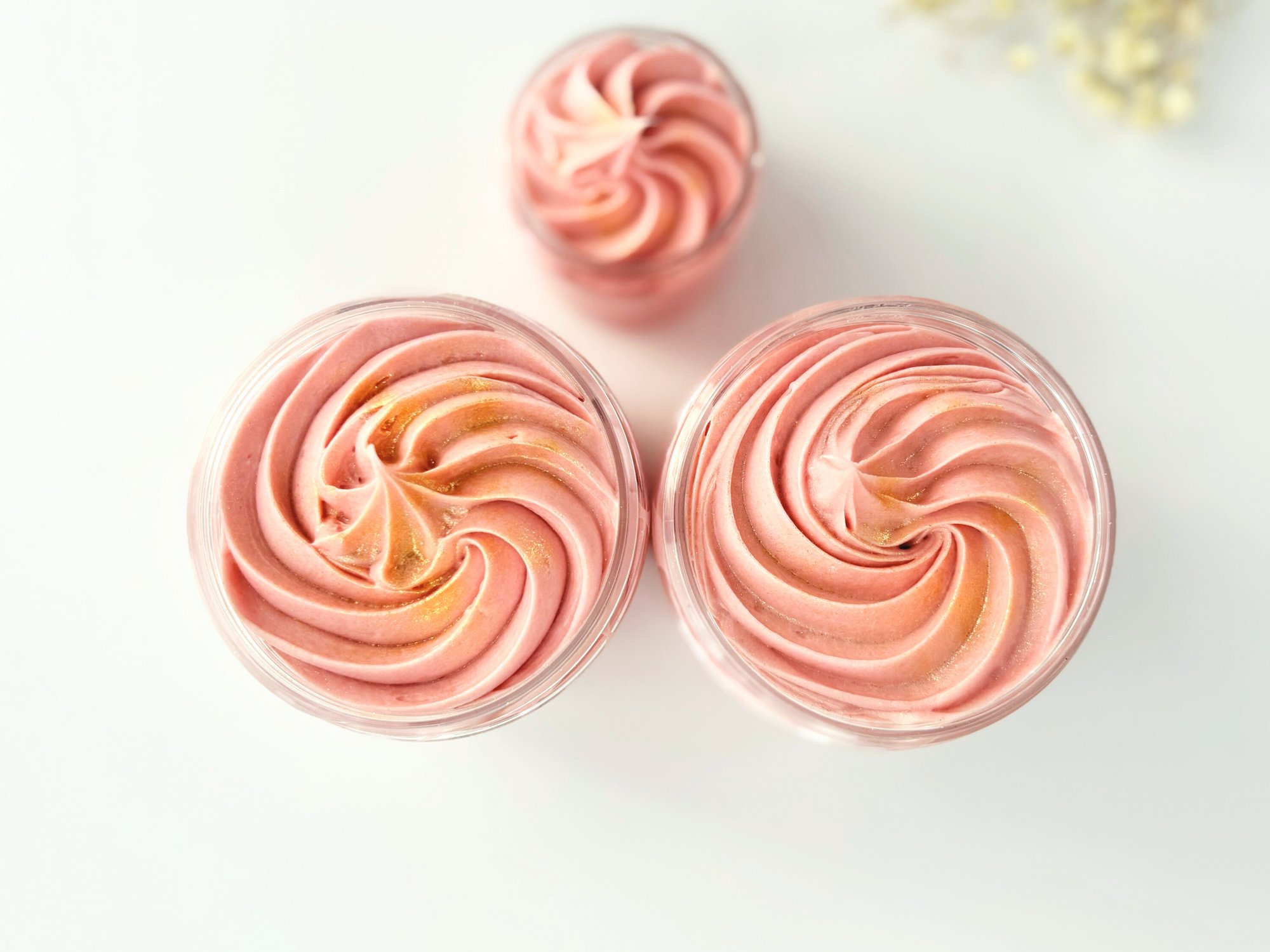 Whipped Soap Ingredients: Sodium Cocoyl Isethionate, Glycerin, Cocamidopropyl Betaine, Aqua (Water), Butyrospermum Parkii (Shea) Butter, Argania Spinosa (Argan) Kernel Oil, Ricinus Communis (Castor) Seed Oil, Stearic Acid, Parfum (Fragrance), Kaolin, Tapioca Starch, Nelumbo Nucifera (Lotus) Flower Extract, Phenoxyethanol (and) Caprylyl Glycol (and) Sorbic Acid, (Paraben Free Preservative), shimmer mica, Titanium Dioxide.