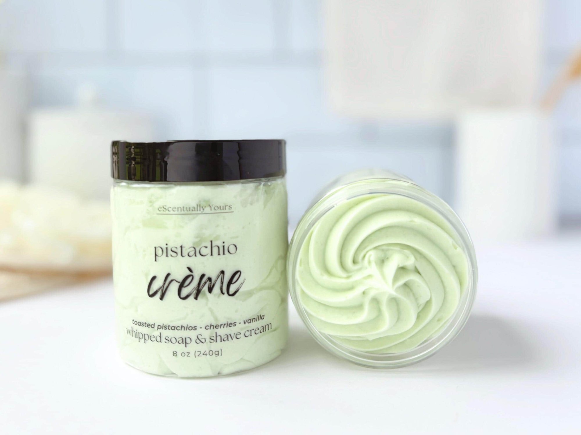 Pistachio Creme Whipped Cream Soap or Foaming Sugar Scrub. Your choice of standard label or "pistachio baddie, sweet, whipped & nutty---just like me" label.