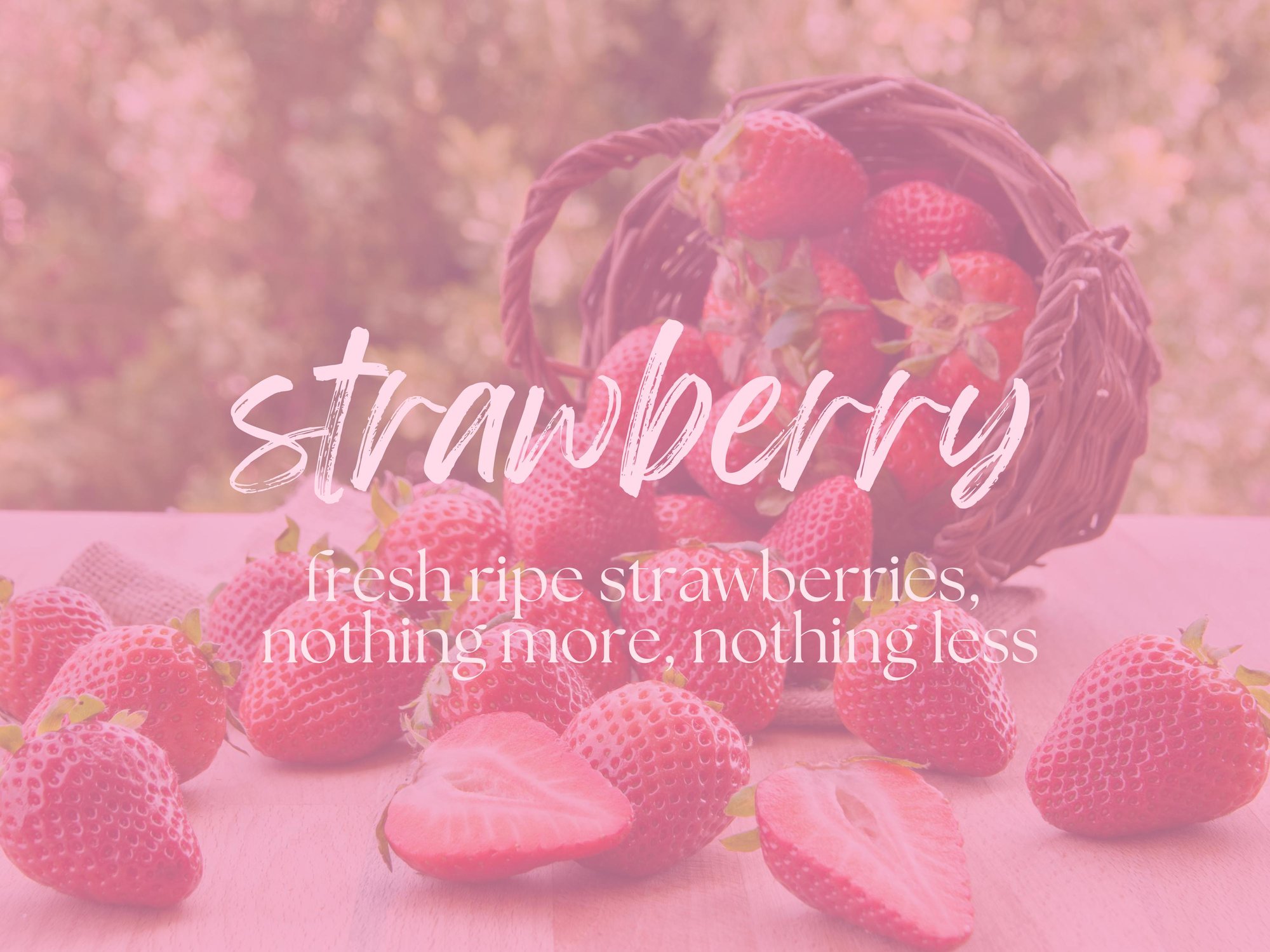 This scent captures the aroma of freshly picked strawberries—bright, juicy, and lightly sweet with a touch of tartness and soft green notes for a natural, true-to-life fragrance.